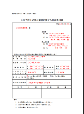 火災予防上必要な業務に関する計画提出書(様式・作成例)