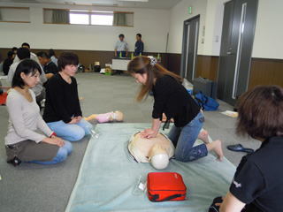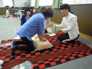 1. 普通救命講習会等で、消防職員と一緒に指導を行います。