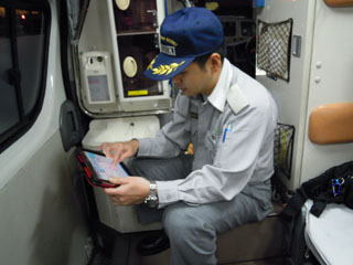 これにより「応需情報の閲覧」「搬送実績登録」をタブレット型情報端末、行いながら並行して携帯電話により医療機関への収容連絡が可能となり、同時運用による所要時間の短縮並びに、関係者に配慮した活動が可能となった。