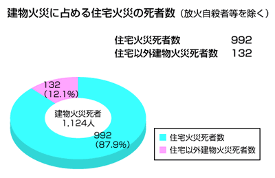 「住宅火災による死者数」は、建物火災による死者数の約9割に及びます