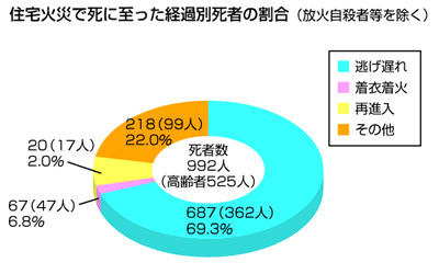 「住宅火災による死者」の7割が逃げ遅れによるものです