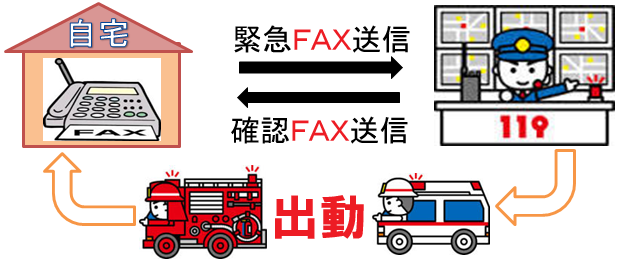 稲敷広域消防本部では,聴覚や言語機能に障害のある方や,病気などで急に言葉が話せなくなった人などが,自宅のファックスから「119」するだけで消防署へファックス送信することができます。