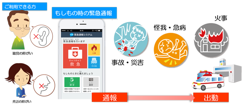 ・稲敷広域圏内在住で聴覚や発話に障がいがあり、音声による通報が困難な方が利用できます。