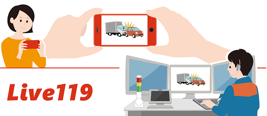 『Live119』とは、通常の音声による119番通報に加えて、現場の状況を映像で確認できるシステムです。